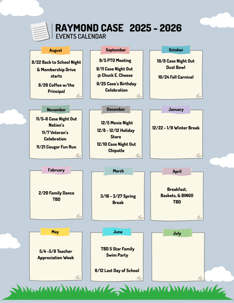 Our PTO is a 501(c)3 organization composed of parents, grandparents, teachers, caregivers and community members who are interested in supporting the Raymond Case Elementary School community through fundraising and community service.