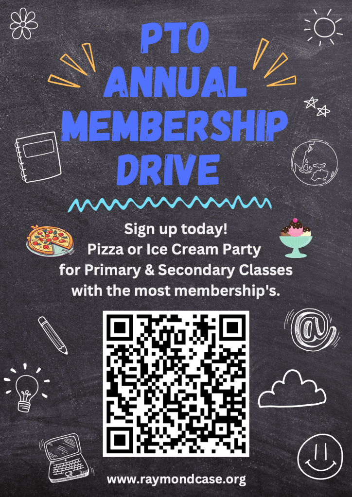 Raymond Case Elementary School’s PTO (Parent/Teacher Organization) invites you to join our annual membership drive. Please show your support to help us have another successful school year for our students and teachers!